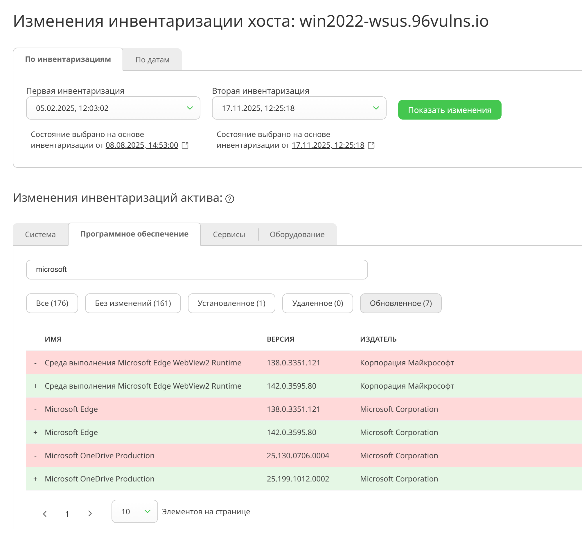 Удобная визуализация изменений между любыми сканированиями с выгрузкой в Excel и дифференциальный отчет об изменении конфигурации актива