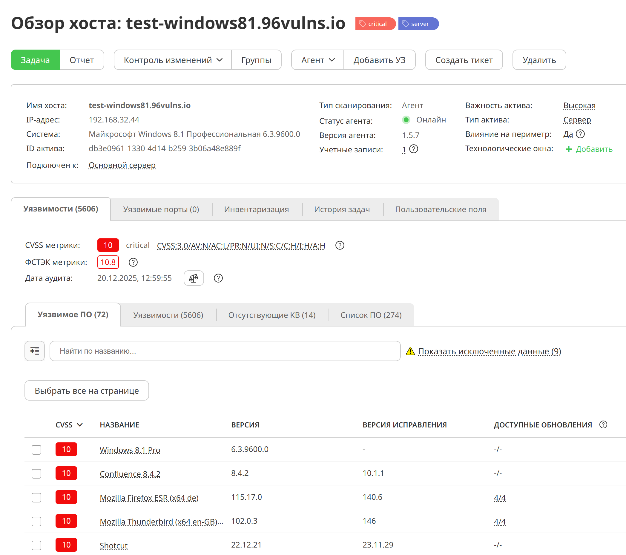 Правильный расчет приоритизации уязвимостей по свежей методике ФСТЭК от 30.06.2025, учитывающий особенности вашей инфраструктуры. Расчет показателя V в реальном времени после сканирования любого из активов.