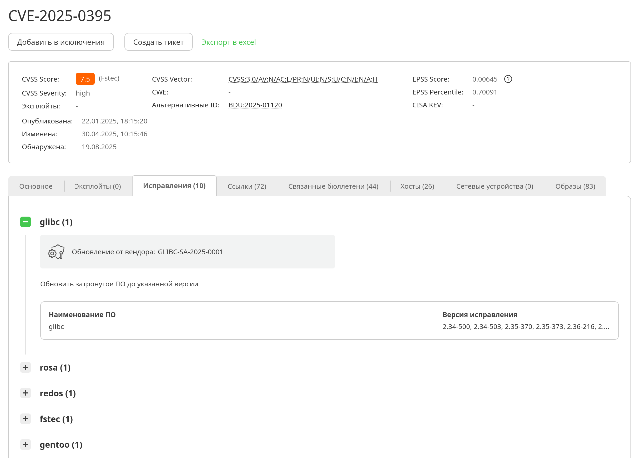 Также в новой версии реализован расчет критичности уязвимостей по новой методике ФСТЭК от 30.06.2025: