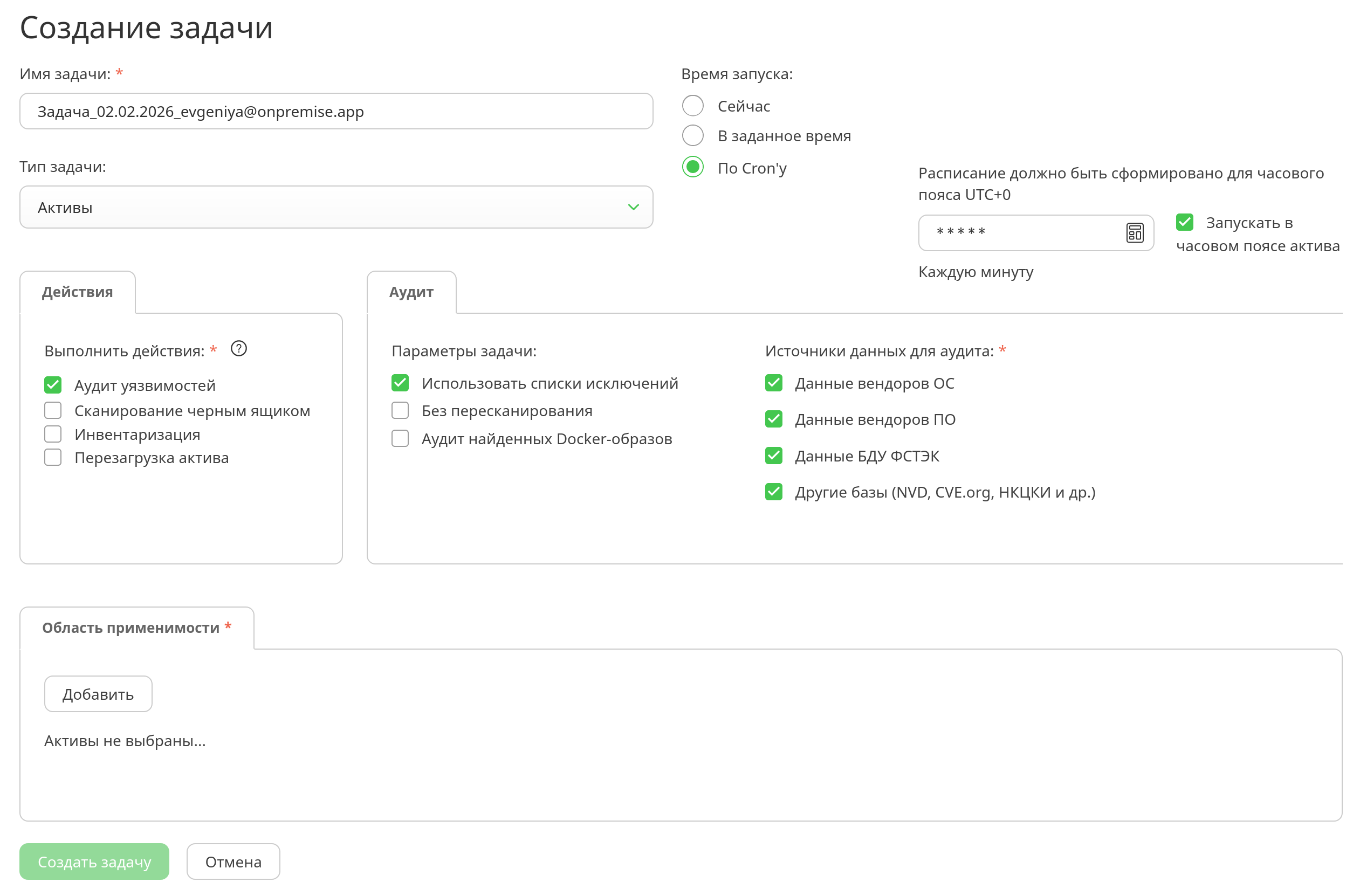 Задачи теперь могут выполняться в часовых поясах активов. При создании отложенных или периодических задач можно выбрать время запуска с учетом локального часового пояса активов, либо по умолчанию (в UTC +0).