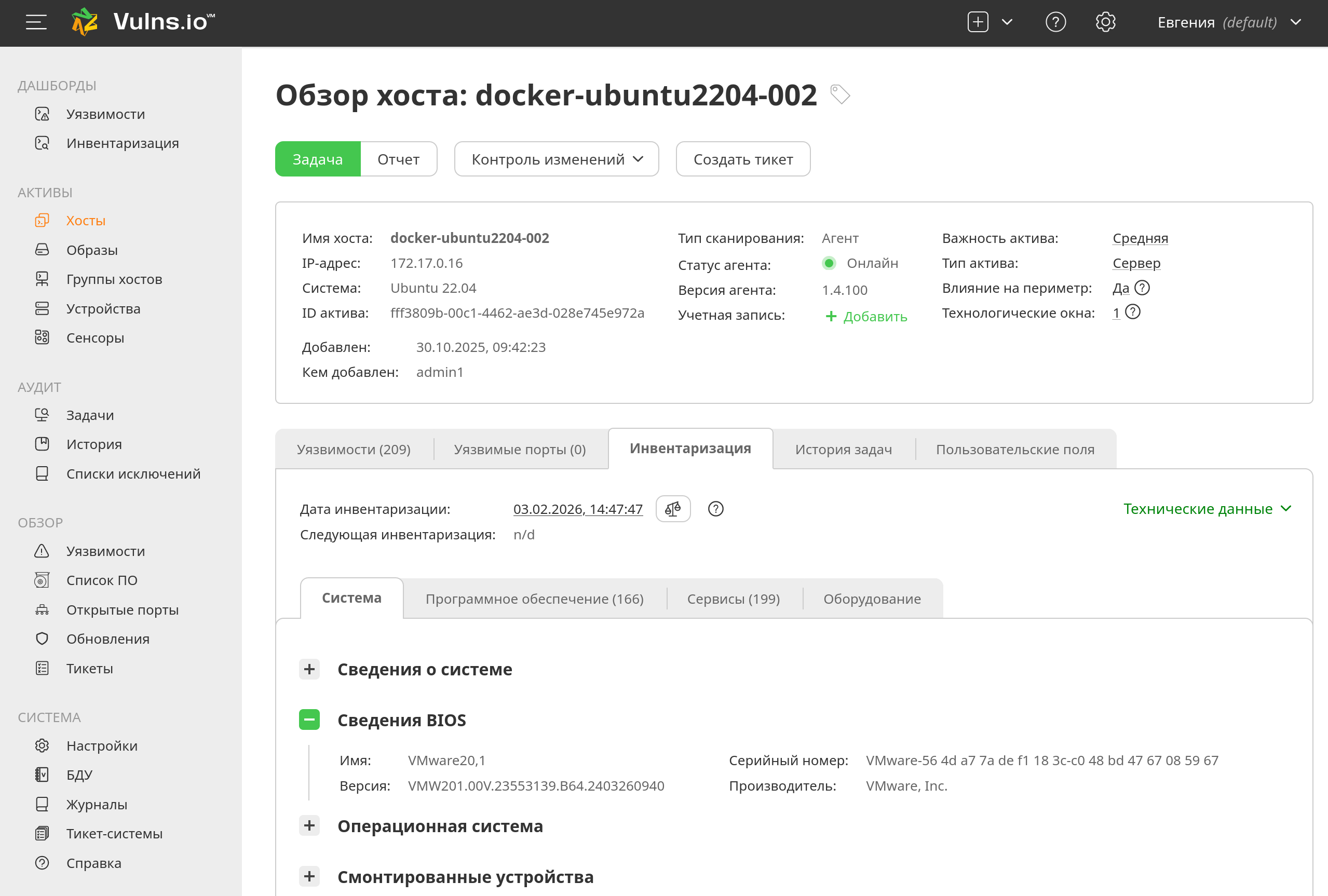 Задача инвентаризации для активов-хостов теперь может собирать информацию по BIOS, такую как серийный номер, версия и производитель.
