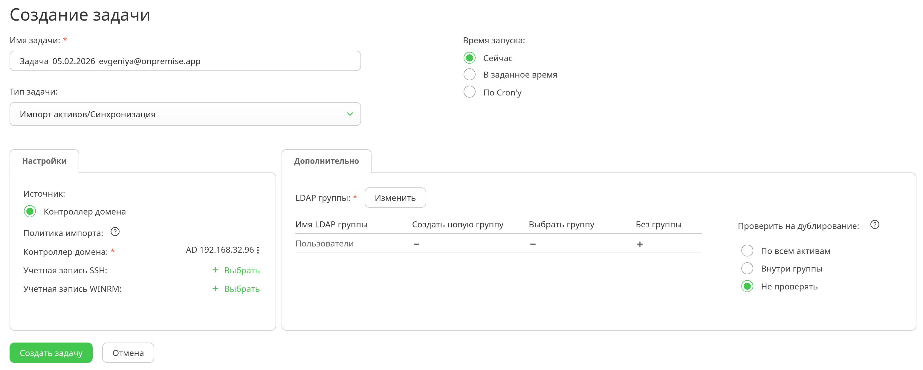 Также появилась возможность синхронизации активов из контроллера домена AD/LDAP и дальнейшего их импорта в Систему.