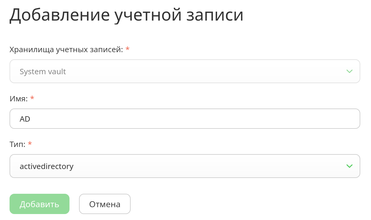 Для синхронизации Системы и контроллера домена появились новые типы учетных записей: Active Directory и LDAP.