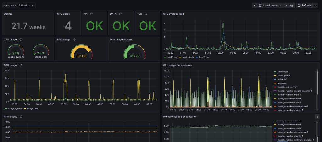 В новой версии добавлен новый функционал - сбор и экспорт статистики в Grafana. Данная программа интегрируется с Системой и выводит данные о сервере в виде дашбордов, графиков, таблиц и т.п. В Grafana отображаются: