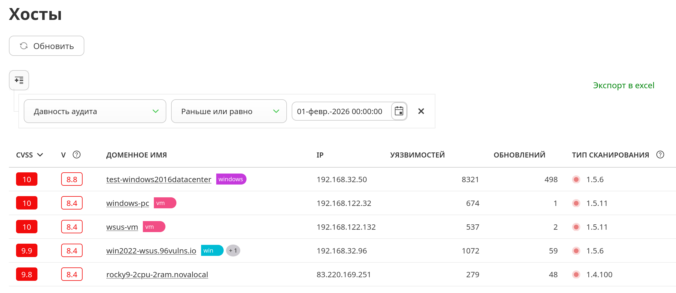 В новой версии добавлен фильтр по давности аудита уязвимостей в списках активов. Он позволяет отобразить активы по заданной дате проверки.