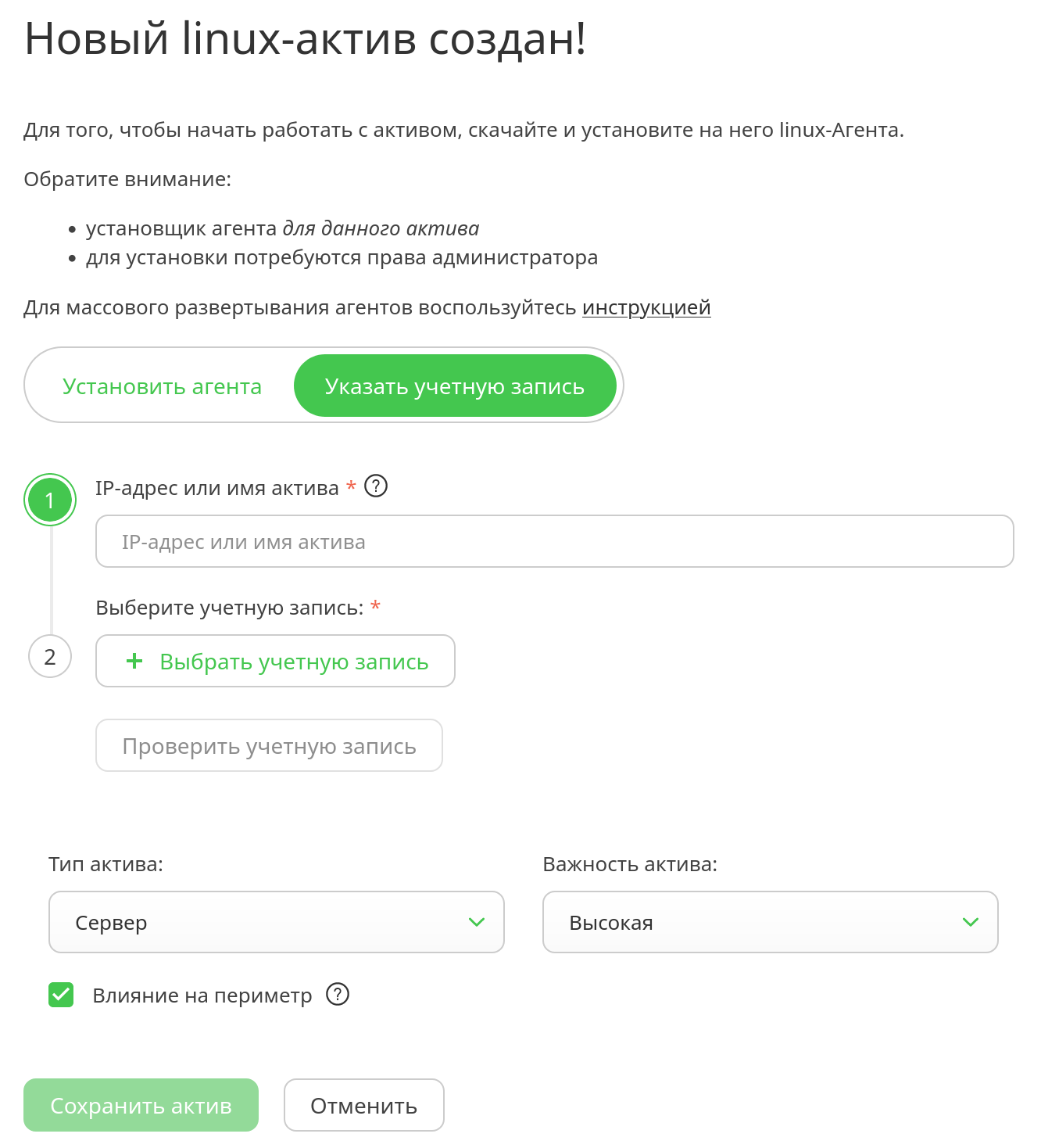 Появилась возможность добавлять активы по "hostname". В случае безагентного подхода теперь можно указать либо IP-адрес, либо имя хоста.